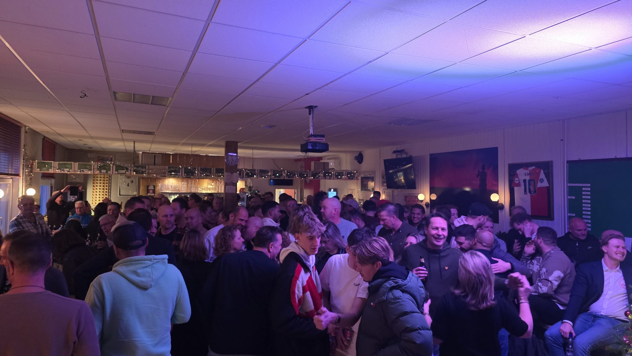 De nieuwjaarsrecepties bij v.v. Hellevoetsluis zijn over het algemeen niet als receptie te bestempelen. Vaak draait dit uit op een gezellig feestje, in een bomvolle kantine. Ook de nieuwjaarsreceptie van 2025 was daarin niet anders dan andere jaren. Al ruim voor aanvang van de receptie stroomde de kantine vol en toen zanger RICK aan zijn optreden begon deed hij dat voor een al goedgevulde kantine. Toen voorzitter Edwin Boogaard om 16:45 uur klaarstond voor zijn nieuwjaarstoespraak was de kantine weer afgeladen en zat de stemming er al goed in. Nadat eerst volgens de traditie vrijwilligster An Roelse toegezongen werd voor haar 86e verjaardag, werd de nieuwjaarstoespraak nog eens begonnen met een verrassing voor haar. De bar in de kantine is namelijk vanwege haar jarenlange inzet achter de bar m.i.v. heden omgedoopt tot de An Roelse Bar, uiteraard tot goedkeuring van alle aanwezigen! Na de speech, welke ook volgens de traditie weer volledig op rijm uitgesproken werd, ontstond er een gezellig feestje en werd 2025 op een gezellige manier ingeluid!